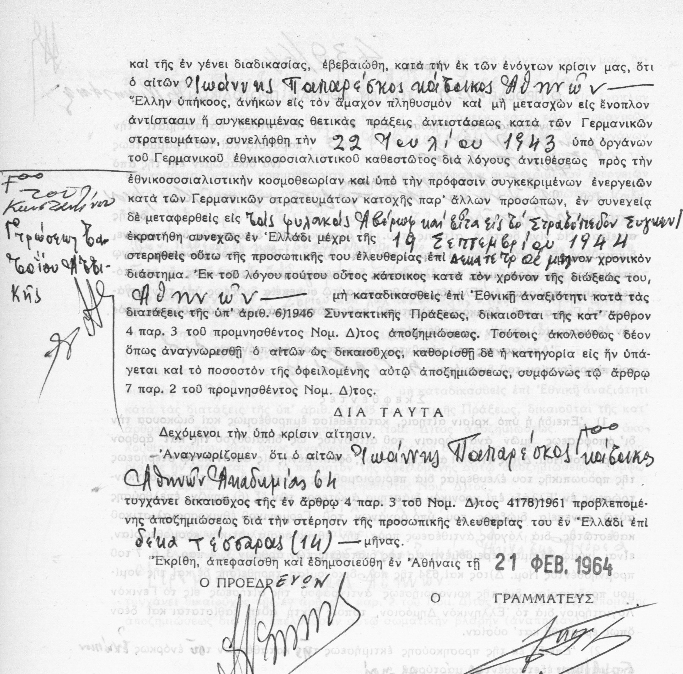[4] GRGSA, Nazistikes Apofaseis [Nazi Decisions] 1963, No. 3373/1963.